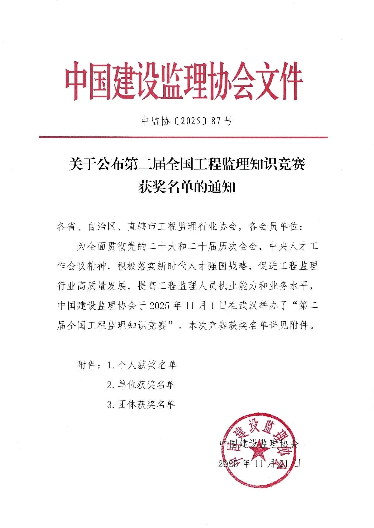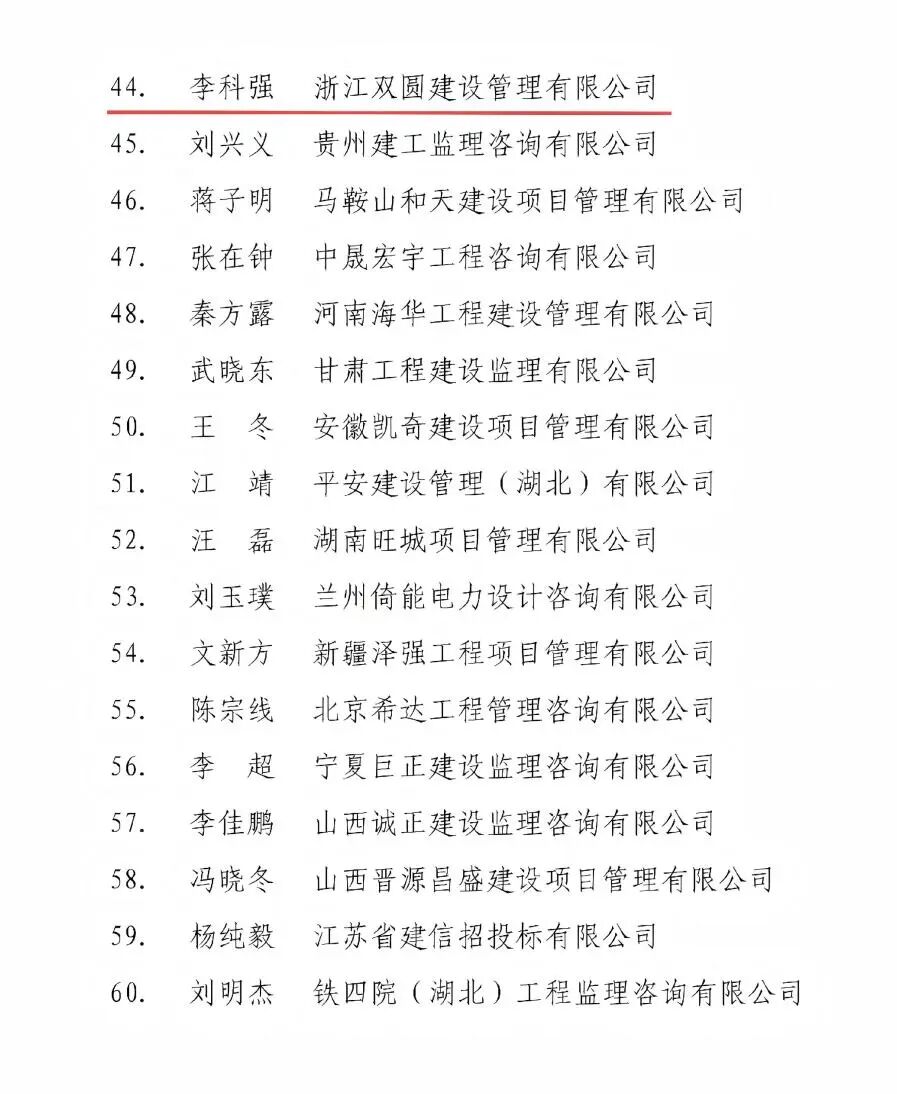 今日,中国建设监理协会公布第二届全国工程监理知识竞赛获奖名单,双圆建管员工李科强获青年组优秀奖。