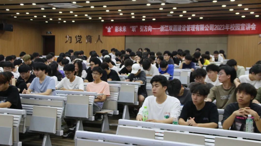 本次宣讲主题是“金”彩未来,“职”引方向,当然少不了学长的成长经历分享。双圆建管金茂未来社区项目总监江慧作为公司年轻总监代表,亦是金职校友,他结合自身成长经历,讲述了他的成长之路,也分享了他在双圆建管就业经历和成就,入职双圆建管8年时间,在双圆的平台上他一步步从基层监理员做到项目总监,这离不开他勤奋好学和双圆给予的职业规划和晋升空间。他表示,总监不是他的目标,成为复合型人才才是他的目标。同时,他鼓励金职建工的学弟学妹们,在择业时要重视职业生涯起点,勇于创新,敢于突破,在就业后要不断加强自身理论学习,总结实践经验,改进工作方法,才能创造人生的奇迹。
