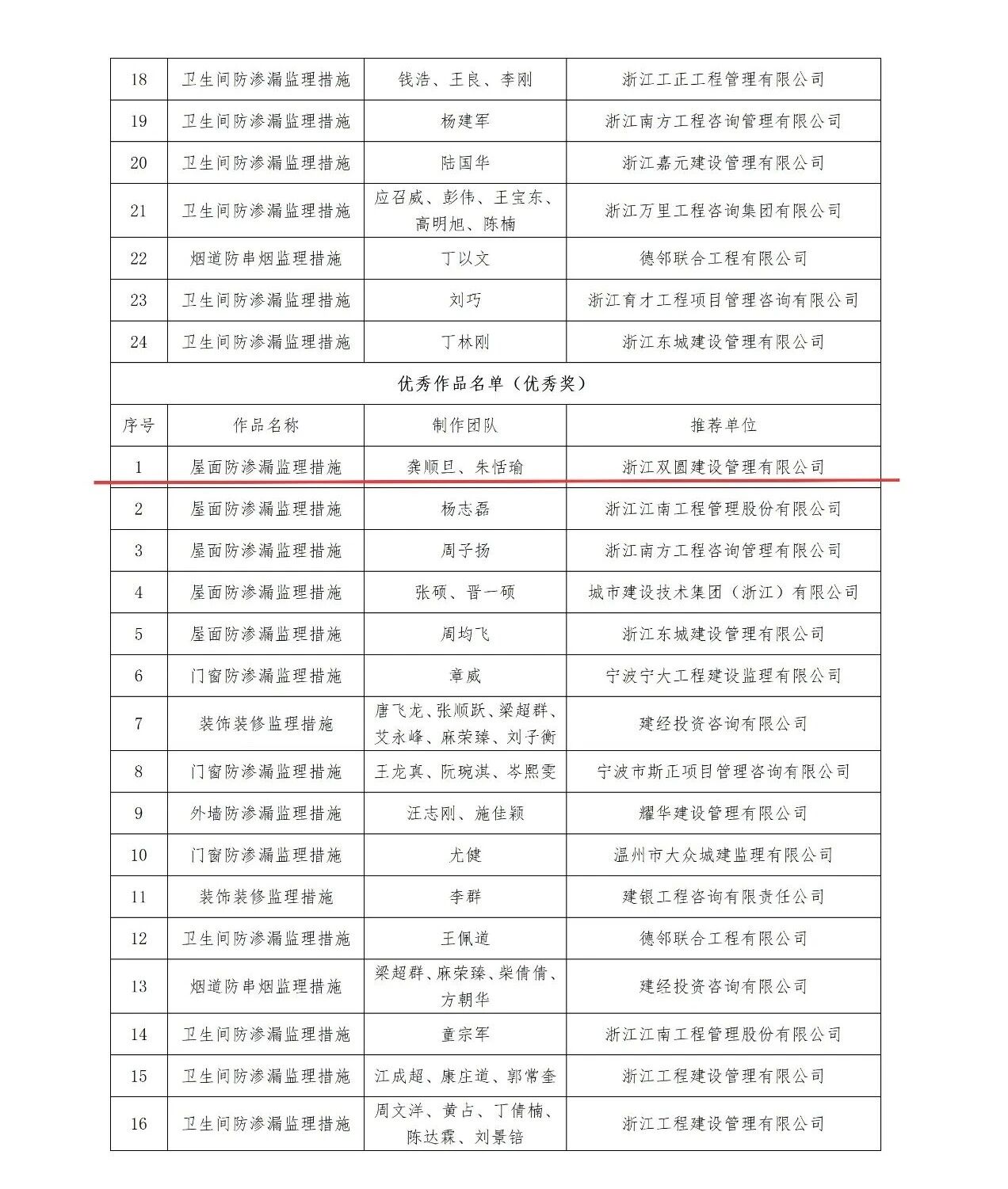 近日,浙江省全过程工程咨询与监理管理协会正式公布2025年度浙江省监理行业“未来之光杯”微课大赛获奖名单,由双圆建管选送作品《屋面防渗漏监理措施》获大赛优秀奖。